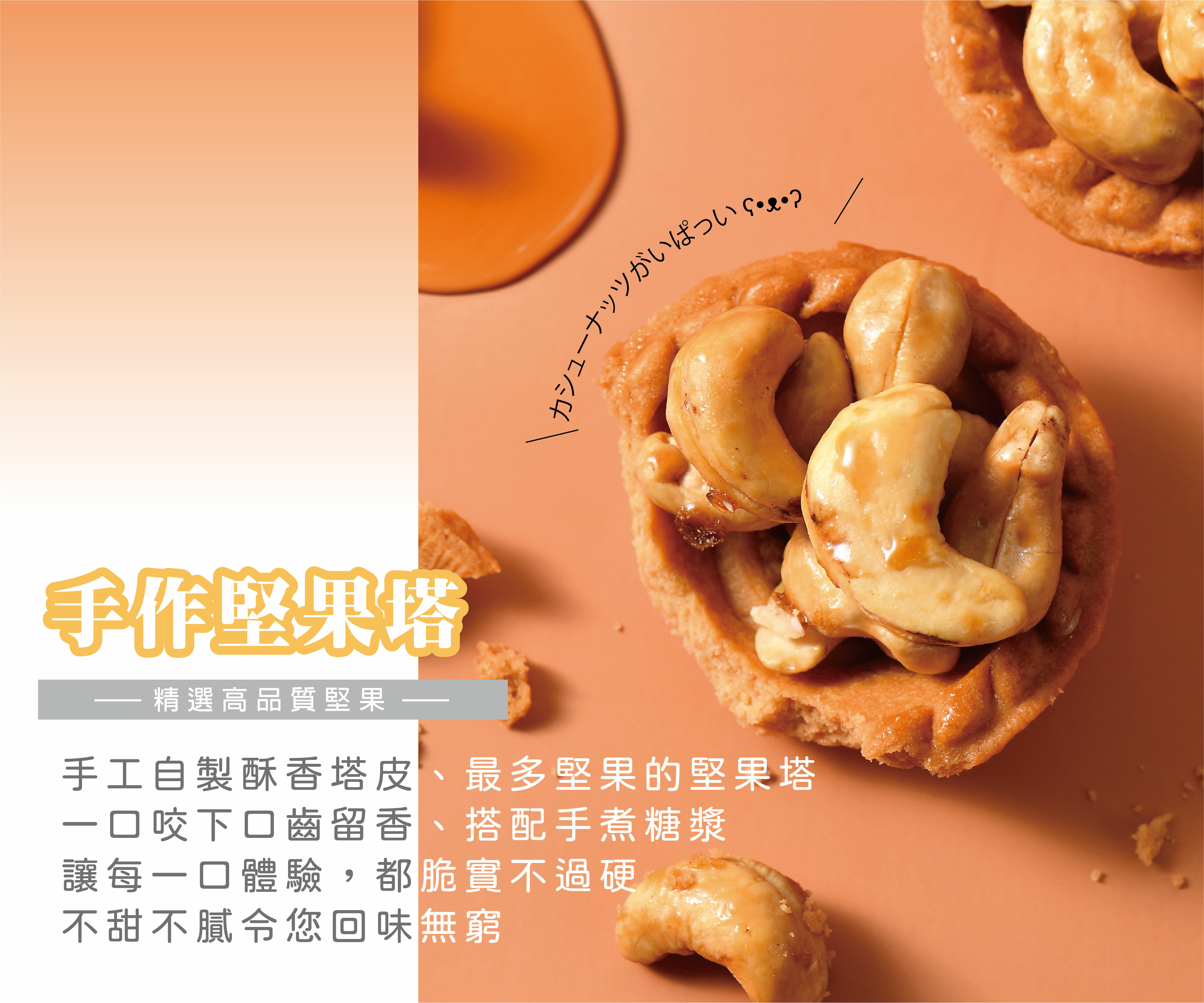 成份:腰果、麵粉、發酵奶油、雞蛋、砂糖、海藻糖、麥芽糖、黑糖、鹽