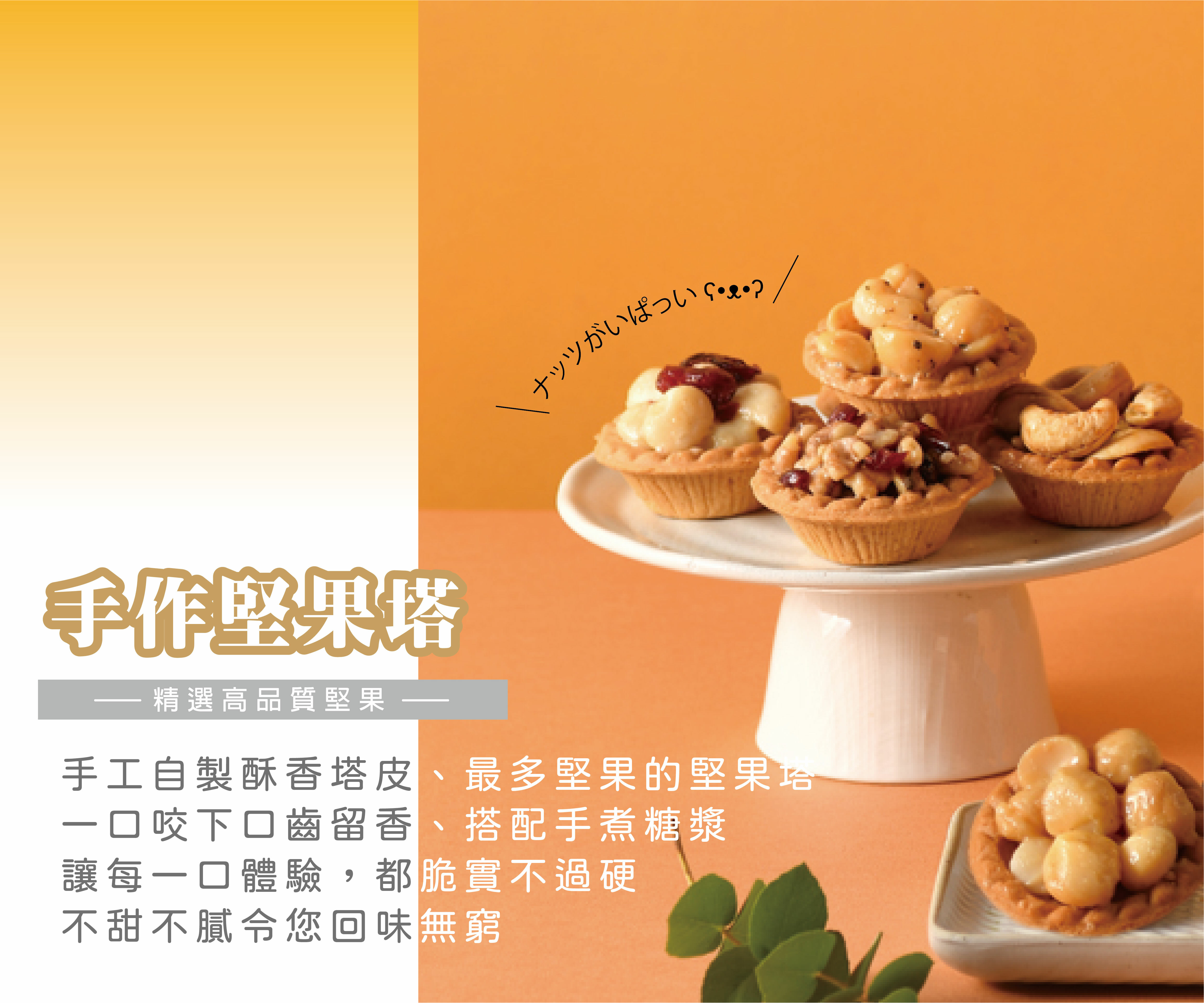※此禮盒堅果塔配置為綜合4種口味,春節檔期恕無法自選口味。