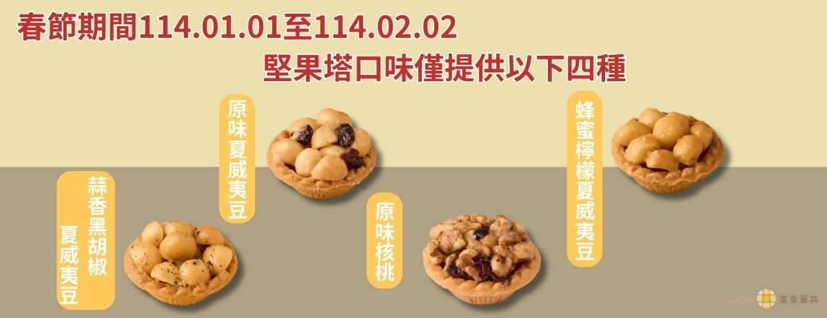 ※ 堅果塔若需自選口味,品項請選【自選口味】並在備註欄填寫想要的口味及數量